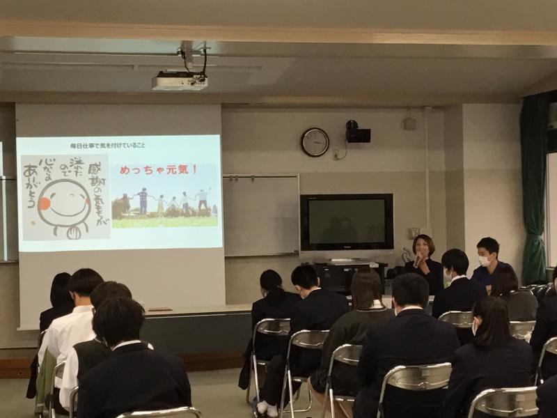 ZOOMの設定にてこずりましたが、生徒に採用側である企業の考え方を伝えることができてよかったです。明るく元気にあいさつすることが重要であることをご教示いただきました。職に就くことは、稼ぐこと、企業にとっても個人にとっても稼ぐことを共有することが重要なのだとわかりました。研修の大切さも教えていただきました。来年は企業見学ができる環境になればいいなと思います。