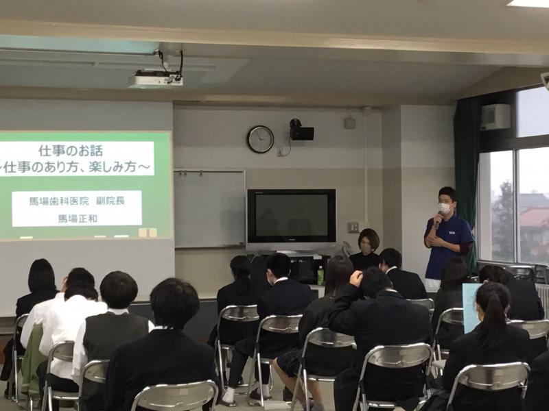 標記事業の2回目を、パネルディスカッション形式で実施しました。パネラーは(株)エスアール 代表取締役社長 瀬戸玲子 様と馬場歯科医院 歯科医師 馬場正和 様です。「職に就く」意味や「地元で働く」意味、「進学すること」の意味など自由に発言いただきました。「失敗は成功のもと、チャレンジしての失敗はOK」、進学することは「選択肢が広がる」などご教示いただきました。来週は、高松機械工業株式会社の総務部長 古屋様とZOOMで結んで、企業様からご意見をいただくことになっています。大学見学とあわせて、進路・キャリア学習にあてますので自分の進路選択に役立ててほしいと考えています。