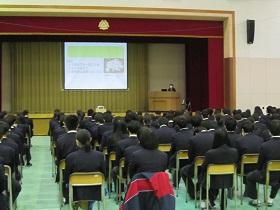 白山警察署生活安全課 肥田氏にご講演いただき、薬物の恐ろしさについて学びました。自分自身や自分の身の回りの大切な人のためにも薬物に手を出さないことを心がけてほしいと強くお話され、生徒達は真剣に聞き入っていました。
