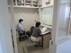 生徒は緊張感をもって、面接指導に臨んでいました。この教室はお盆休みをはさ