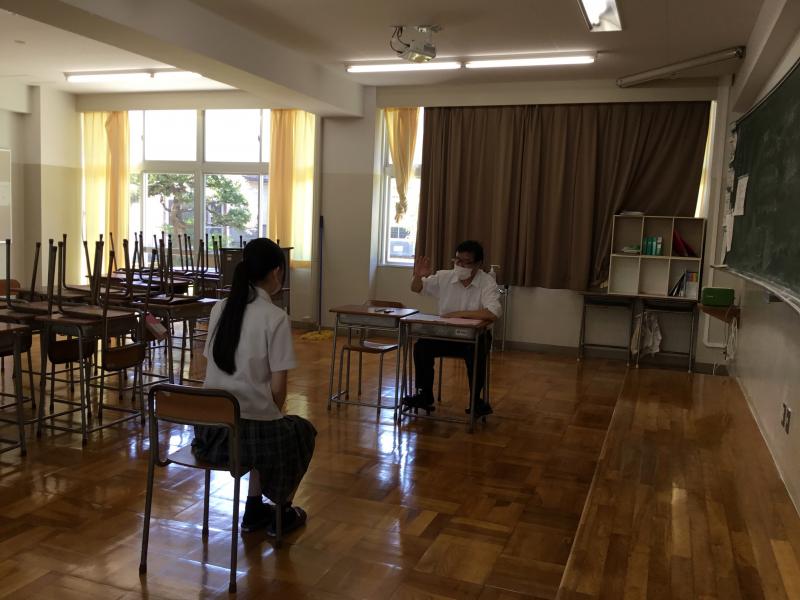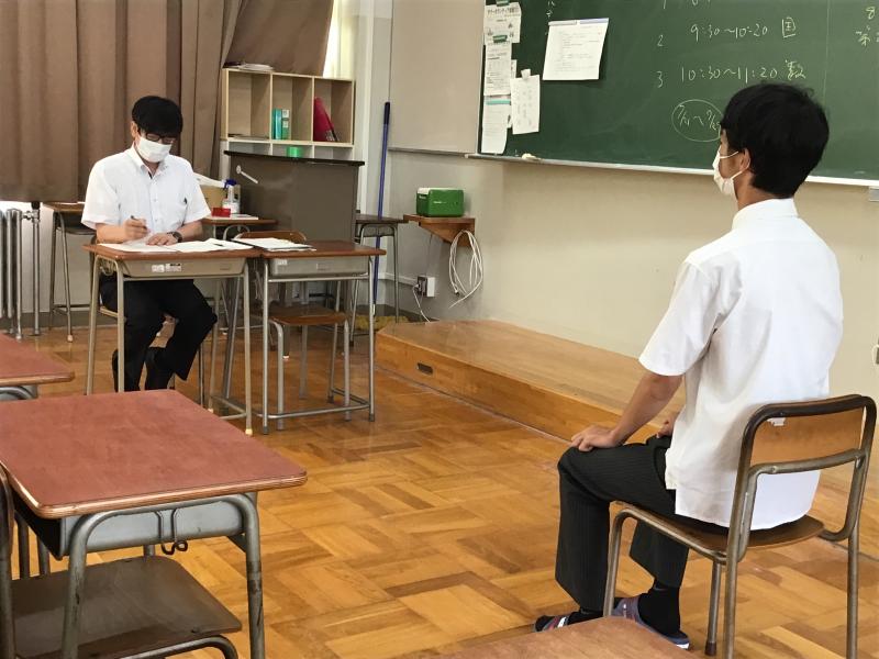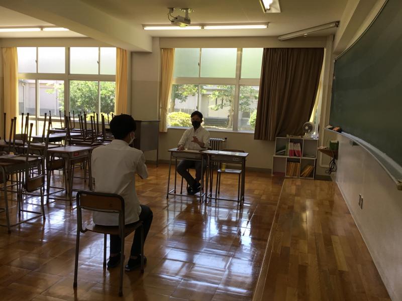 令和3年度「進学教室」が始まりました。日程は7月30日(金)~8月4日(水)です。8月4日には、成果発表として模擬面接を実施します。今日(8月3日)で3日目ですが、生徒は緊張感をもって面接指導に臨んでいました。