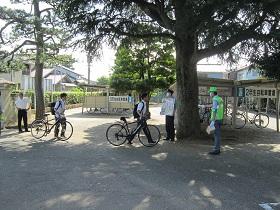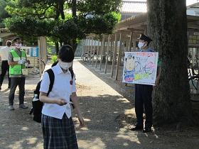 7月15日朝、白山警察署と白山野々市防犯協会の方々が来校し、自転車盗難防止キャンペーンを行いました。正門付近で自転車盗難防止啓発グッズを生徒に配付し、生徒の防犯意識向上を呼び掛けました。最近自転車の盗難が増えているそうです。きちんとカギをかける習慣を身につけておきましょう。
