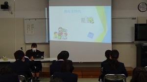 様々な職業についての理解を深め、自己のライフプランを探究し、さらにまた、積極的に聞いたり、発表したりする意欲や態度を育成するため、「職業体験学習発表会」を行いました。校長先生の開会のあいさつの後、今年度は、代表者8名の生徒が、自己の「ライフプラン」や「職業体験学習」での成果と課題等をパワーポイントにまとめ、発表しました。最後に、教頭先生から、本校の「職業体験学習」の歴史や経緯、生徒の発表に対する講評をしていただきました。