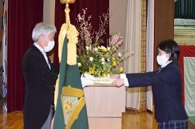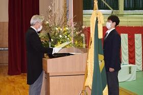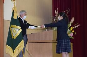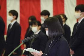 また答辞で、上竹優花さんが、「この1年のコロナ過の中で、大会や行事が中止・縮小となり、悔しい思いもしたが、家族と過ごす時間が増え、家族のことを思うことが増えた。自粛をしながらもできることを探して取り組んだ1年間でした」と述べました。また3年間の思い出を振り返りながら、先生方の指導と家族の支えで今日を迎えられたことに「ありがとうございます」と繰り返し謝意を述べ、後輩たちには「松任高校が更に発展するよう伝統を受け継いでほしい。」との思いを綴り、結びとしました。