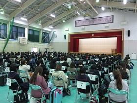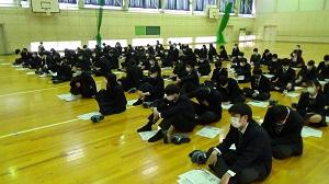 令和3年度入学生の「仮入学説明会」を3月23日(火)に行いました。115名の入学生とその保護者が参加して行われました。南教頭のあいさつの後、各担当から入学に関わるさまざまな説明がありました。全体会の後、制服や体育着の採寸、教科書等の購入を行いました。