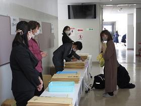 2021年3月24日 09時00分令和3年度入学生の「仮入学説明会」を3月23日(火)に行いました。115名の入学生とその保護者が参加して行われました。南教頭のあいさつの後、各担当から入学に関わるさまざまな説明がありました。全体会の後、制服や体育着の採寸、教科書等の購入を行いました。