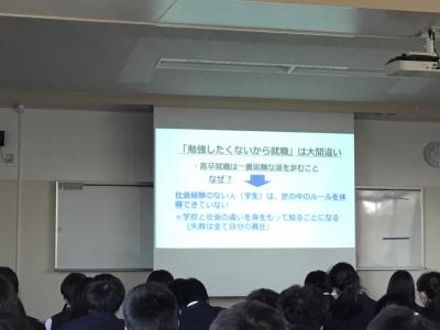 進学と就職の考え方の重要性、高校生活をしっかり送り模試をうまく活用して自分の位置を把握しておくこと、就職を考えて進学を考えていくことなど、多くのことを学びました。