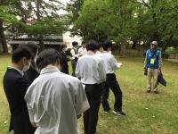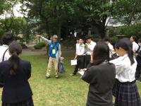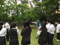 5月22日(木)午後、総合学科3年ビジネス系列33名が、他県の修学旅行生に案内する白山市松任地区観光資源の学習をしました。2グループに分かれて、松任城址公園から、千代女の里俳句館、聖興寺、圓八、松任ふるさと館の5か所をまわりました。白山市観光ガイド2名の方から、ガイドの仕方などを学びました。2学期から、他県の修学旅行生に案内できるように、学びを深めていきます。