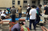 本日 晴天の中、第1回植栽事業が行われ、白山市から頂いた花苗200株をPTA花と緑委員会、生徒、教職員で植え付けました。おかげさまで生徒玄関と職員玄関をきれいな花々で彩ることができました。また、準備から後片付けまで笑顔で活動するすがすがしい生徒の姿を見ることができた嬉しい1日でもありました。本日ご参加くださった皆様、本当にありがとうございました。