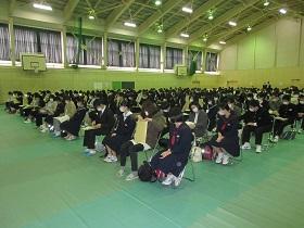 令和2年度入学生の「仮入学説明会」を3月21日(土)に行いました。110名の入学生とその保護者が参加して行われました。南教頭のあいさつのあと、各担当から入学に関わるさまざまな説明がありました。全体会の後、4班に分かれ、制服や体操着の採寸、教科書等の購入を行いました。