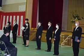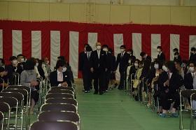 「第57回卒業証書授与式」が、3月3日(火)に本校第2体育館で、PTA会長・山本洋平氏、同窓会長・橋場勇生氏を来賓としてお招きし、挙行されました。新型コロナウィルス感染拡大防止のため、規模を縮小した卒業証書授与式となりました。式辞で佃和明校長が、江戸時代の天文学者・伊能忠敬が50歳からかねてからの夢であった天文学を学び初め、その功績から日本地図の作成に関わったことを引き合いにし、「大切なことは夢に向かって行動すること。失敗を恐れずにがんばってほしい」とはなむけのことばを贈りました。また答辞として、代表の村井皓太くんが「松任高校の先生方の支えがあったから今日を迎えることができた」と感謝のことばを述べました。