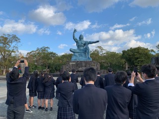 生徒たちが朝からテキパキと行動できたおかげで、スムーズに見学できました。 その後、長崎市内の班別自主研修を行いました。