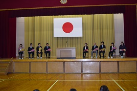 終業式の後、離任式が行われ、9名の先生方が別れを告げました。