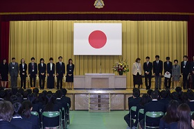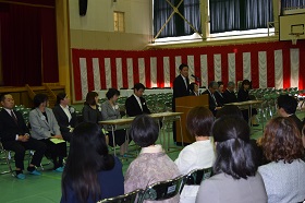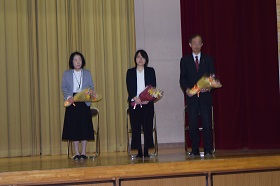 また、退任式も行われ、3名の先生方が退職のことばを述べられました。離任、退任される先生方、たいへんお世話になりました。今後のご健勝を祈念しております。