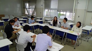 本校では、校外での集合研修により専門的な知識・技能を習得し、校内研修によって、実践的な指導力を身に付けるため、育成プログラムを進めています。研修を深め、生徒一人一人の基礎学力定着を図っています。