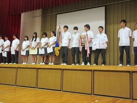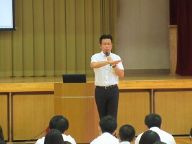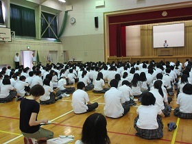 1学期終業式が7月19日(金)に行われました。佃和明校長が脳科学者・茂木健一郎氏の話を引き合いに「脳を『本気』にさせるには『書くこと』が重要。『甲子園で1勝する』『ウインブルドンで優勝する』など、はっきりとした目標を書くことが大切。そうすると脳は未来を先取りし勘違いを起こし夢を叶えることができる。この夏は具体的な目標を設定し有意義な夏休みを送ってほしい。そして2学期にまた元気な顔を見せてほしい」と訓辞されました。