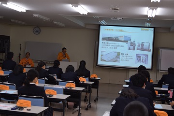 企業の担当者様から、概要説明を受けたあと、手作業による加工の現場や、実際の組み立て現場、自動倉庫などを見せていただきました。生徒の目には、実際に働いている方々や、工場設備などがどのように映ったでしょうか。この貴重な体験を、今後の進路選択に生かしてほしいと思います。