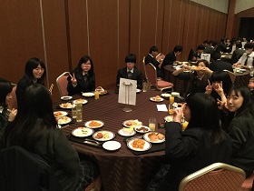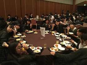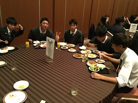 初日の夜は「ヒルトン福岡シーホーク」に宿泊。学年全員でとる夕食は格別だったようです。