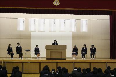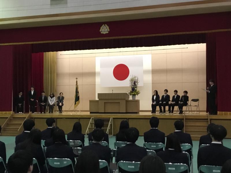 今年度から新しく沖野校長が赴任され、式辞で「人生の歩みの中で大事なことは夢を持つこと、その夢に向かって一歩一歩努力すること。また、ご縁を大切にする生き方をすることで夢にも思わなかった夢と出会うこともあるので、人生の不思議さと豊かさを楽しみにすること。」とのお話がありました。