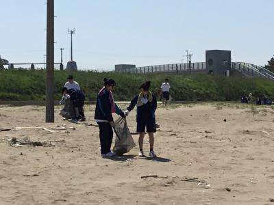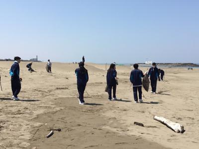 到着後は心地よい風の中、海岸清掃をしました。様々なプラスチックごみがありました。