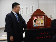 1月9日、15日に家庭科の選択科目「子どもの発達と保育」で、かなざわ紙芝居倶楽部 森 ときえ代表、西村 祐亮さんをお招きして、紙芝居の作り方や演じ方を教えていただきました。