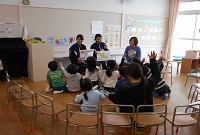 家庭科の科目「子どもの発達と保育」の授業で、12月~1月にかけて計4回、白山市立松任幼稚園に行ってきました。手作りの紙芝居に園児達も喜んでくれました。