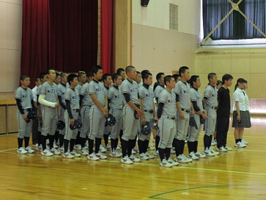野球部と全国大会出場を決めた自転車競技部・合唱部の壮行式が行われました。