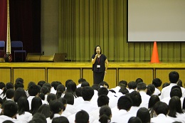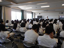 7月8日(土)に3年生の進学志望者対象の志望理由書および面接対策として、学研アソシエから小論文添削室講師の先生に来ていただき講座が行いました。関西弁の軽妙で親しみやすい話し方に、参加した100人以上の生徒たちは時に笑いながらも聞き入っていました。