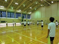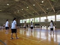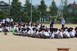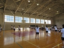 生徒は暑い中、体育館で汗を流しながら一生懸命頑張りました。