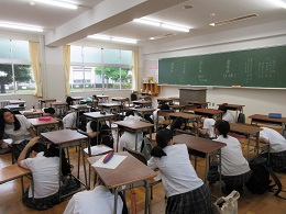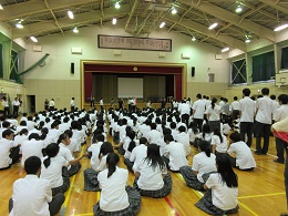 今年度の「災害避難訓練」を7月4日(火)7限後に実施しました。「地震発生後、1階ボイラー室から出火、延焼のおそれがあるため、第2体育館に避難する」という想定で行いました。生徒たちは、私語も少なく整然と避難できたように思います。講評で北村幸恵校長が「家や学校で災害に遭遇したとき、予め家族や友人に自分の所在を知らせておくこと」や「地域での自分の役割の確認をしておくこと」が大切であると話されました。
