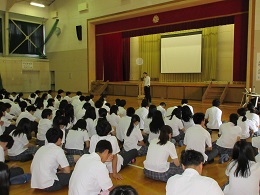 明日からの夏休みを前に、「防犯・非行防止教室」が行われ、白山警察署・生活安全課の南野良祐主任と学校指導課の池田成寿先生からお話を伺いました。スマートフォンの普及により、近年の高校生が犯罪に手を染めたり、また反対に巻き込まれたりした事例をいくつか紹介し、「夏休みを前に、みなさんは気が大きくなりがちだが、2学期を全員元気に迎えて下さい」と話されました。