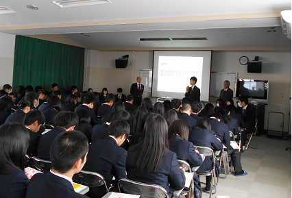 2月15日(水)、2年生を対象に、1年間の進路学習の成果をふまえいろいろな”違い”について、上級学校(大学・短大・専門学校)の担当者からお話を頂きました。生徒は2講座受講し、来年度の進路選択に向けて理解を深める機会となりました。