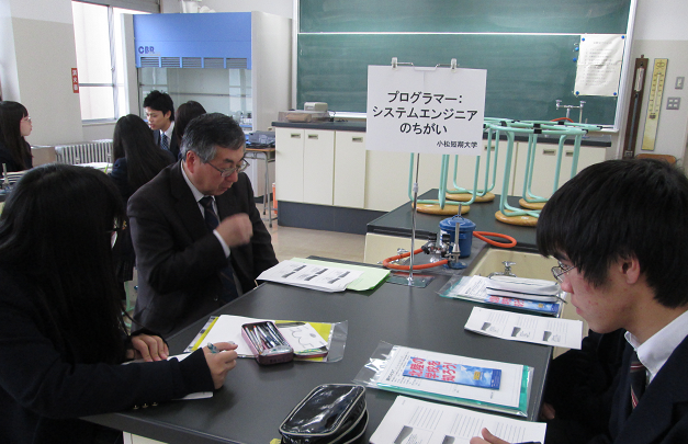 2月16日(木)に1年生を対象に、上級学校(大学・短大・専門学校)の担当者をお招きして、講義や体験授業を実施しました。生徒は、事前に興味のある講座や授業を選択することで、興味深そうに体験していました。今後の進路選択の一助となる活動であったと思います。