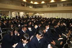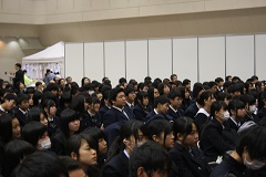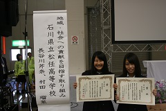 また、産業展示館2号館では、「意見・体験発表会」が開かれ、本校から2年生の長谷川芹奈さん、村田瑠菜さんが「地域・社会への貢献を目指す取り組み」と題して発表を行いました。また奨励賞も受賞しました。「意見・体験発表会」には本校総合学科2年、3年全員が臨み、各学校の発表に耳を傾けました。