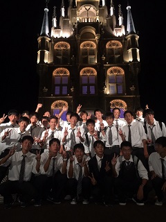 第1日は新大阪駅でのぞみ159号に乗り換え、博多駅で下車、ハウステンボスの園内研修をしました。夜はハウステンボス内の豪華ホテル「ホテルアムステルダム」に宿泊しました。全員元気で日程を順調に消化したようです。