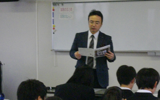 11月14日(月)、標記事業の2回目の講義を1年生普通科の生徒を対象に、野崎(県庁職員)・濱田(金工大)両先生よりしていただきました。