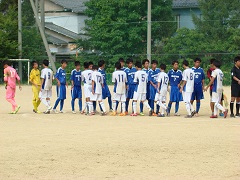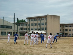 前半30分過ぎに、コーナーキックで青森が頭で合わせ得点。後半10分過ぎにも永田がミドルシュートで得点し、優勢に試合を進めることができました。終了間際に失点しましたが、勝利を収めることができました。応援の生徒も声をからして応援してくれました。保護者や関係者みなさまの応援に感謝いたします。次戦も頑張りますので、よろしくお願いします。