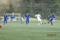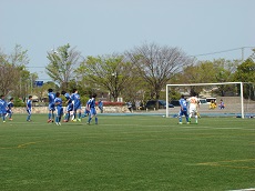 立ち上がりから、ボールへの寄せが遅れ、CKで2点を失うなど、前半は相手に主導権を奪われてしまいました。が、ハーフタイムで切り替え、玉際の詰めを厳しくし、徐々に主導権を握り、相手ゴールに迫る場面も増え、1点を返しました。終了直前に得たCKで何とか追いつくことができました。