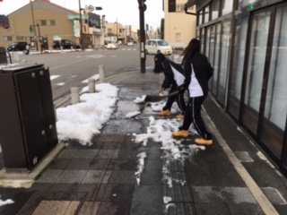 基礎トレーニングを兼ねて、学校周辺を少しだけ雪かきさせていただきました。
