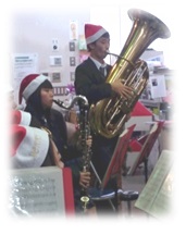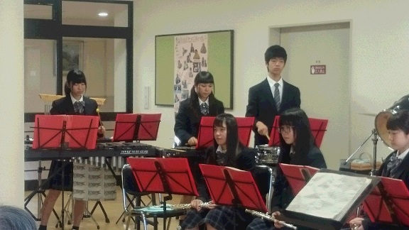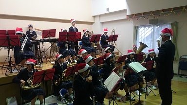 12月17日(土)、笠間デイサービスにおいて「ふれあい演奏会」に出演しました。毎年楽しみにしてくださっているという入所者の皆さんに全員でサンタの帽子をかぶって演奏をお届けしました。「見上げてごらん夜の星を」では、私たちの演奏とともに歌ってくださり、大変盛り上がりました。演奏後には写真撮影などに参加し、生徒たちはたくさんの元気をもらったようです。