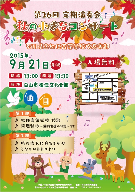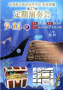 9月21日(月・祝)に松任文化会館にて「第26回定期演奏会」を開催します。お時間がある方はぜひ足をお運び下さい。
