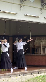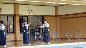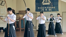 7月23日(土)、白山市松任弓道場にて、松任高校と松任弓道協会の交流射会が開かれました。