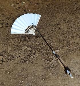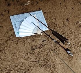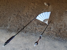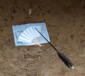 写真のように普段使っている36cmの的よりも小さい扇を狙います。