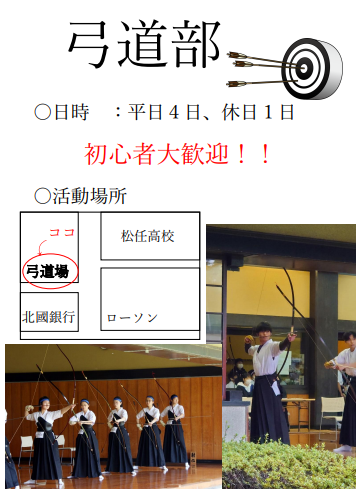 主な大会成績 【2025年度】 石川県高等学校弓道春季大会(4月27日/29日) 男子団体 ベスト4 松任(田尻、酒井、八田、澤口、桶中、柏木、南) 男子個人 優勝 八田 秀晟 女子個人 ベスト5 西田 華菜