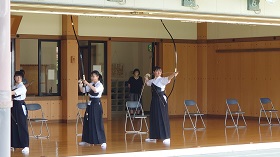 1月5日(木)、新年が明けて初回の部活で「弓始(ゆみはじめ)」を行いました。