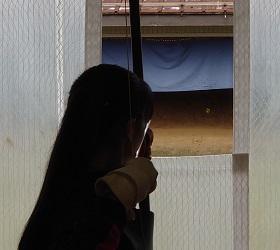 普段練習している近的競技は28m先の直径36cmの的を狙う競技で、