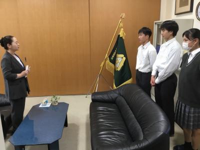 出発を前日に控えた6月5日(水)に、松任高等学校 校長室にて