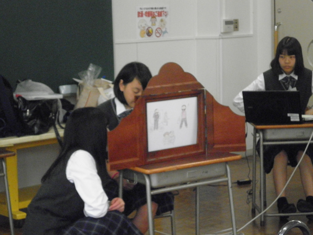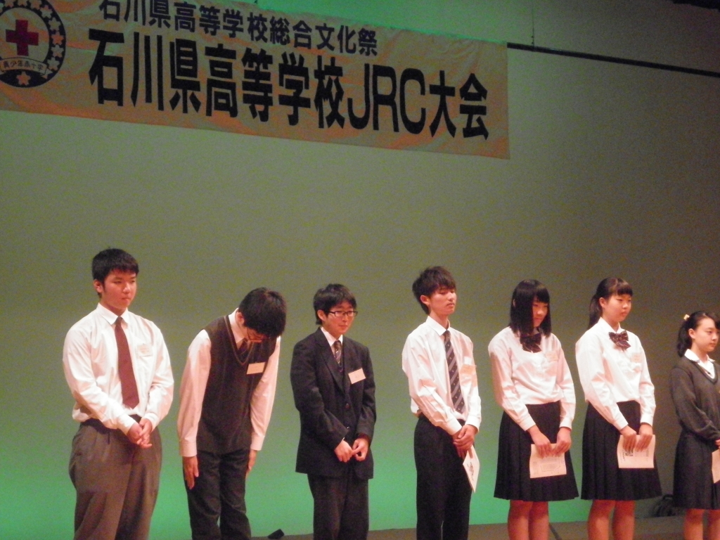 (石川県高等学校JRC大会では他校のJRC部員へ赤十字創設者アンリ・デュナンの生涯について紙芝居と寸劇で発表を行った。)