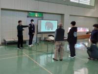 白山市博労にあるあさがおハウスから「松任高校のJRC部と交流がしたい」と声を掛けていただき、12月23日の午後に利用者の方と交流会を行いました。あさがおハウスは耳が聞こえない人、聞こえにくい人の社会参加を支援する施設です。12月4日の手話講習会で自己紹介、基本的なあいさつを事前に学習して交流会に臨みました。初めに手話で自己紹介をした後、ジェスチャーゲームなどで楽しく手話を学びながら交流を深めることができました。