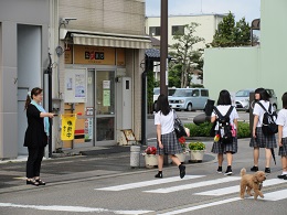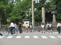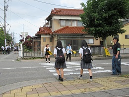 本日は、県下一斉「自転車マナー一斉指導」日で、また本校の「第3回あいさつ運動」第2日でした。昨日からあいさつ運動は展開され、PTAの役員や生活指導委員も参加、松任城趾公園、ファミリーマート前、中町交差点、大阪屋前、大御神社前、本校正門の6カ所に分かれ、自転車マナー指導とあいさつ運動を行いました。昨日は久しぶりの雨でしたが、今日は雨もあがり気持ちのよい朝のスタートとなりました。今回は明日23日(金)まで行います。